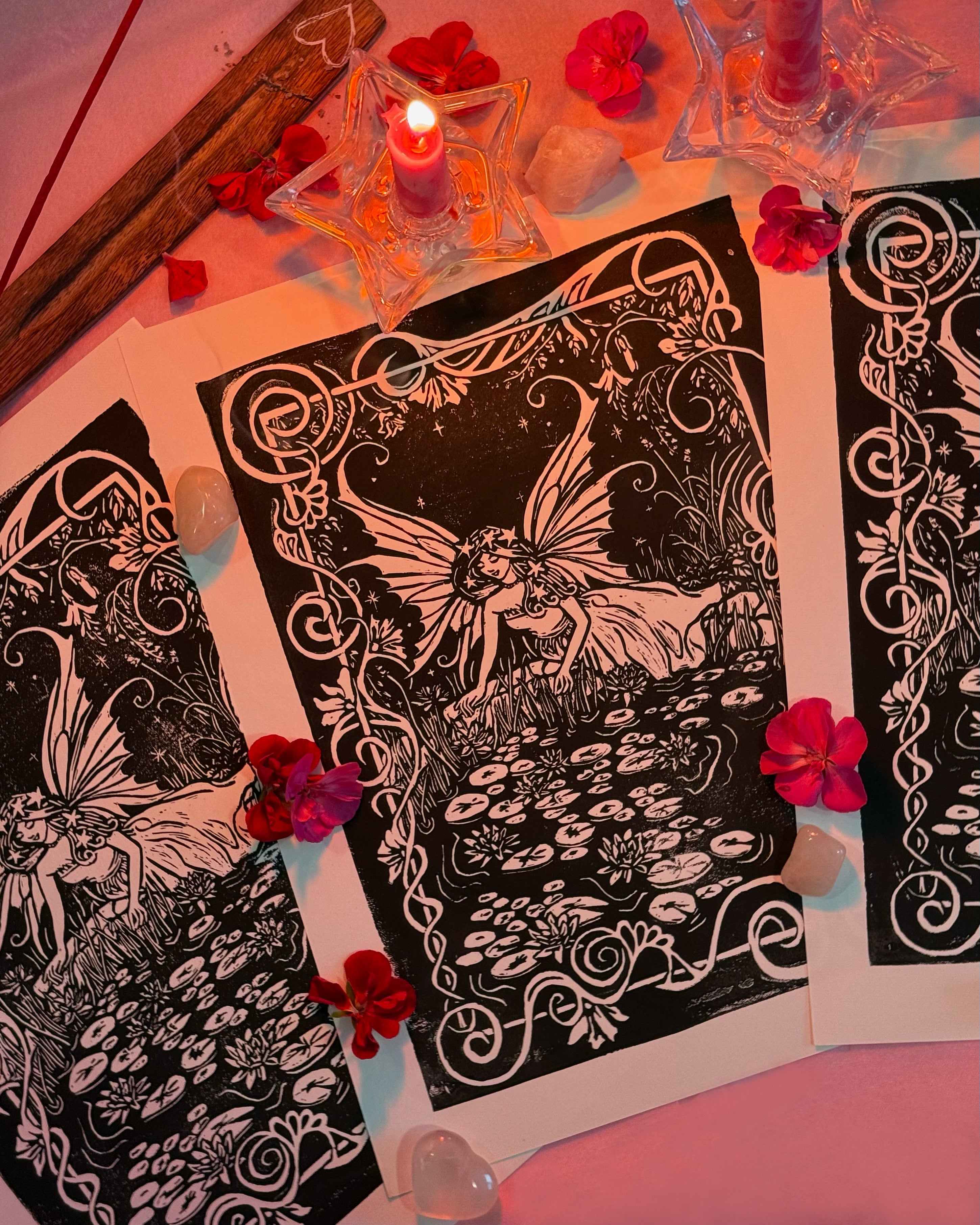 Inside every envelope, you'll find one or two art prints, illustrated stickers, and an astrology letter that breaks down the moon's themes and how they relate to the artwork. I also include extra items that change each month. Every piece is created slowly and intentionally, guided by the astrology of the month and meant to feel personal, reflective, and a little bit magical.